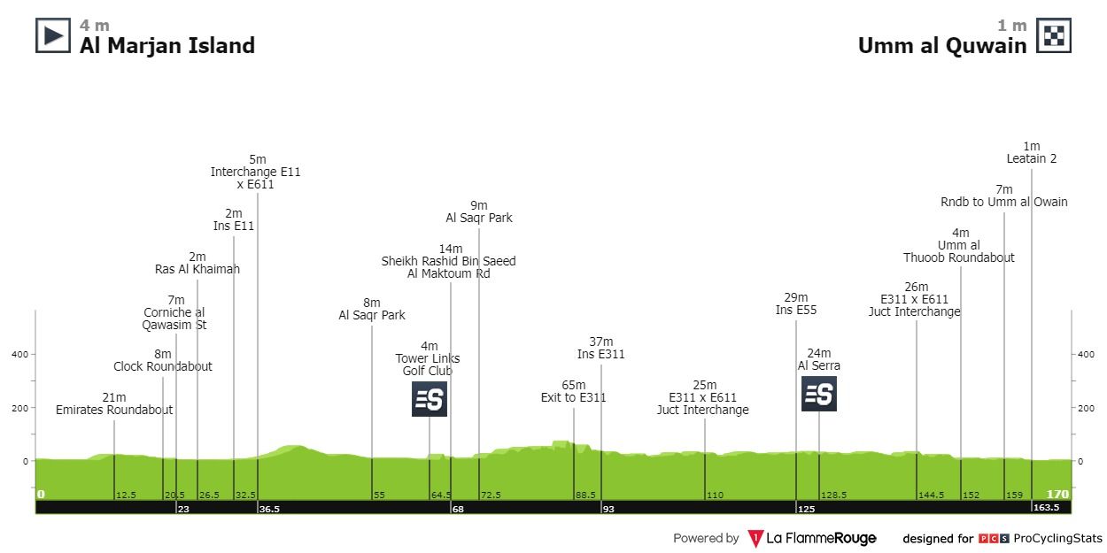 Etapa 1 — Primeira etapa do UAE Tour, primeira etapa ao sprint. Isto, se os ventos do deserto não soprarem com intensidade suficiente para criar o caos no pelotão.