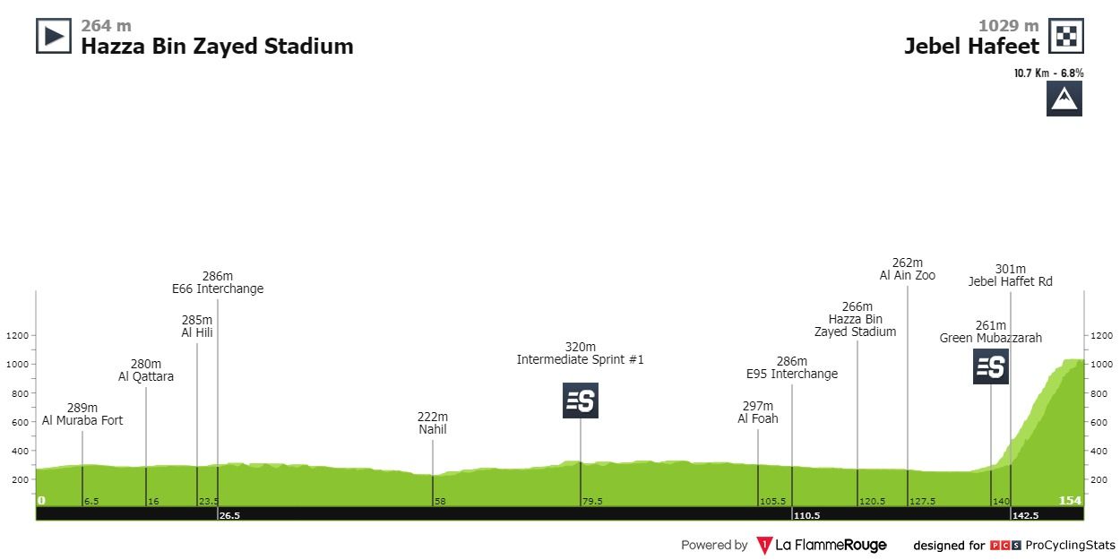 Etapa 7 — A prova termina com a etapa rainha na mítica ascenção de Jebel Hafeet. É uma subida que Adam Yates conhece bem — 1º em 2020 e 2º em 2021 e 2022 atrás de Tadej Pogačar. O britânico parte como favorito mas há outros corredores com categoria para dar espetáculo. Preparem as pipocas.