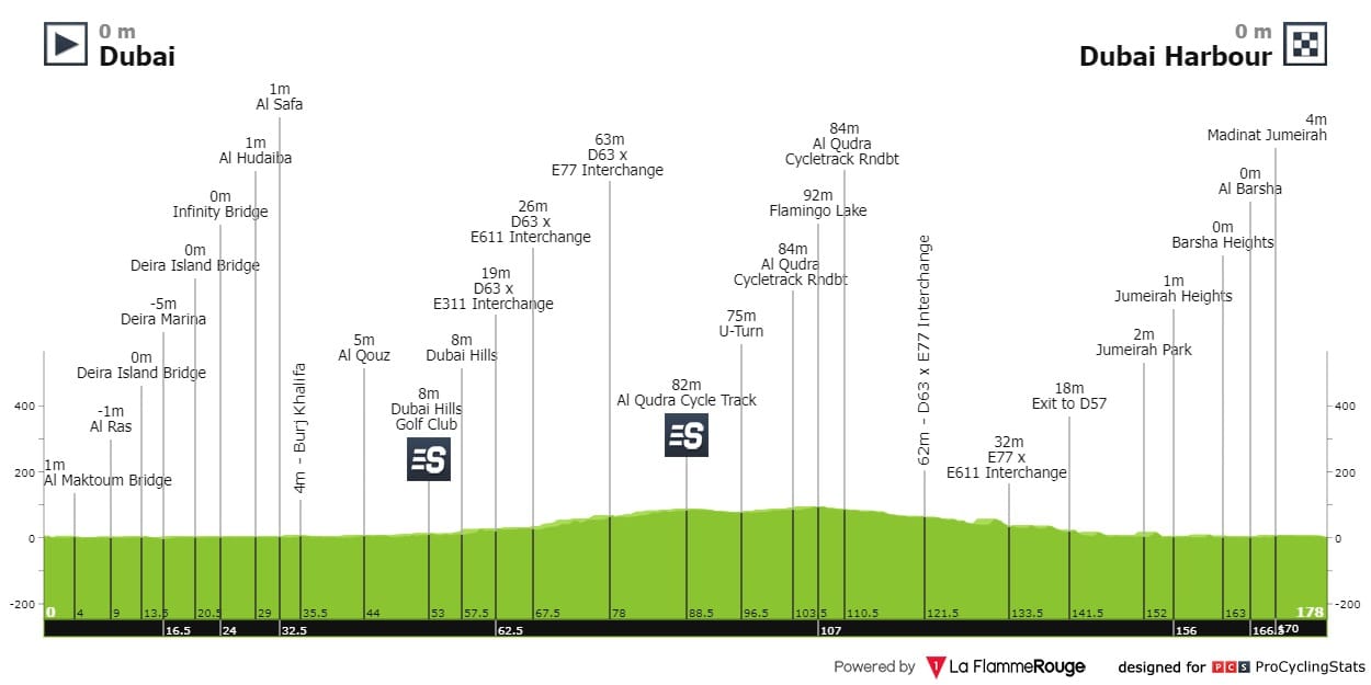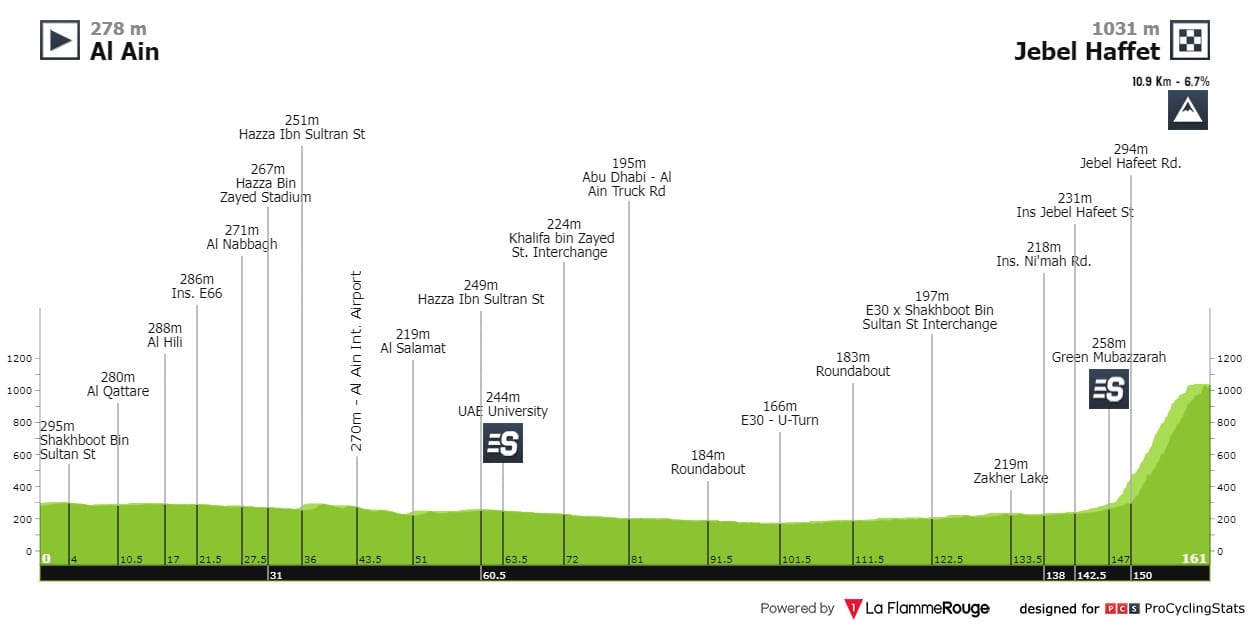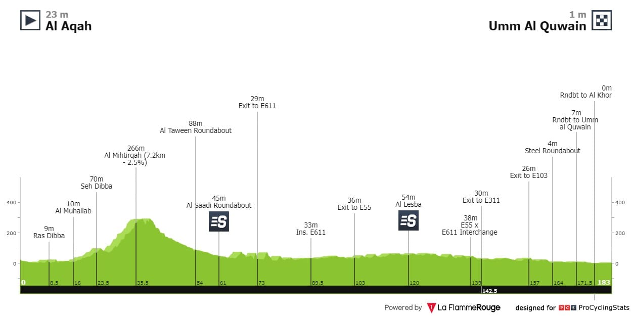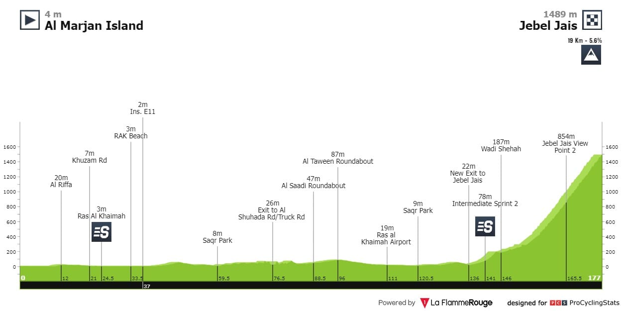 O curto contrarrelógio de 12 quilómetros e as habituais duas chegadas em alto nas etapas de Jebel Jais e Jebel Hafeet são as três etapas que vão decidir o vencedor final.
