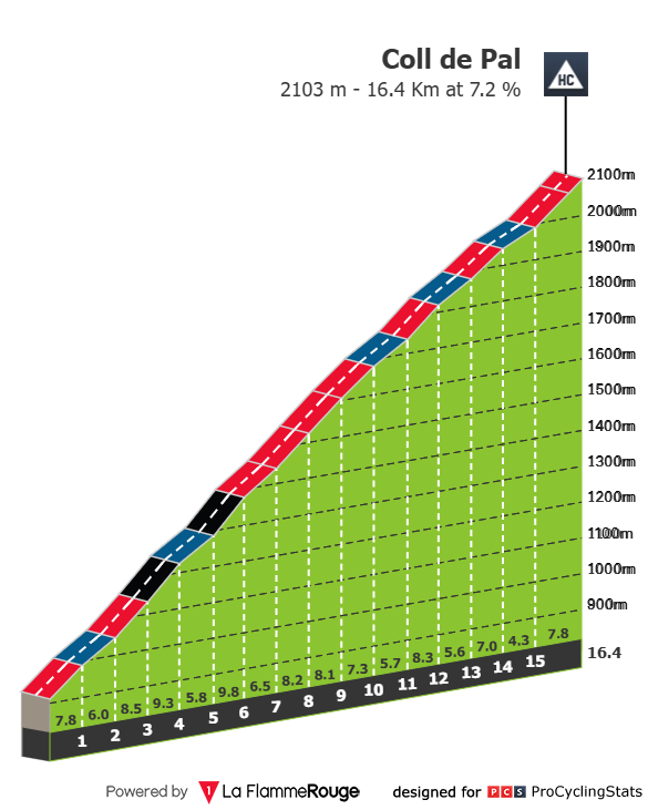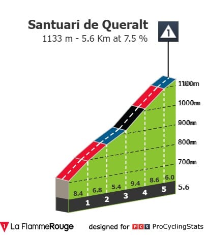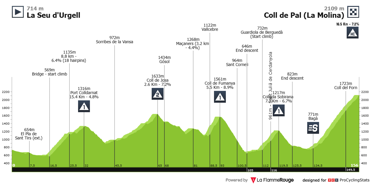 Etapa 5 — Se na véspera foi duro, então aqui mais duro será, naquela que é a etapa rainha desta corrida. 5 montanhas categorizadas com final em alto no Coll de Pal (16.4 quilómetros a 7,2%). É uma etapa digna de grande Volta e atenção que as montanhas desta etapa são duras e com pendentes pouco constantes, algo que não será do agrado de João Almeida.