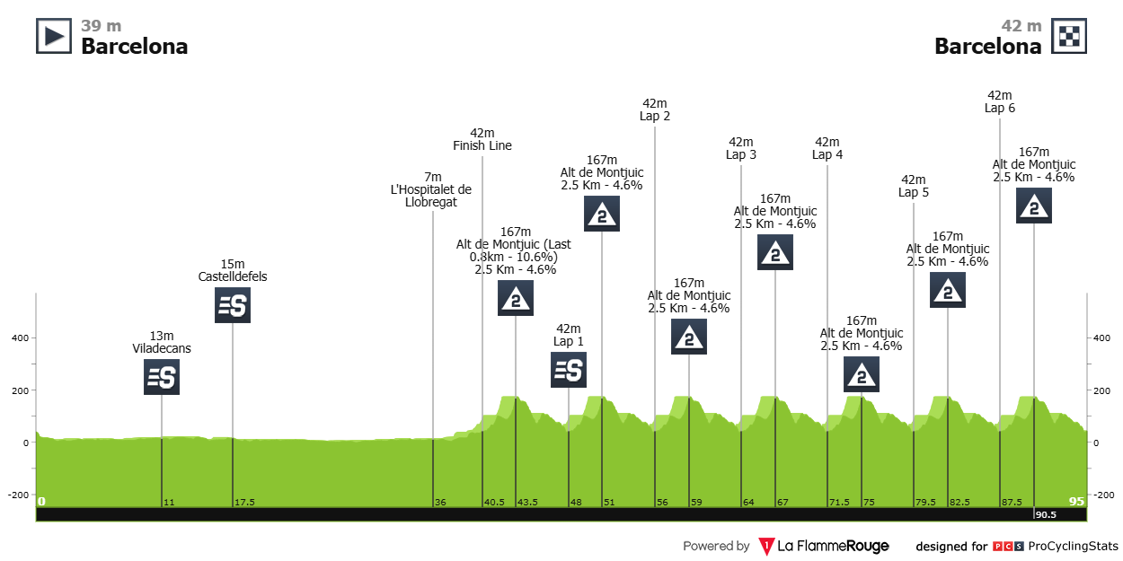 Etapa 7 — Última etapa no tradicional circuito de Montjuic em Barcelona. Dada a natureza deste percurso tanto pode ganhar um ciclista que esteja bem posicionado na geral como um ciclista de fugas ou até um puncheur sprinter, o que é garantido é o espetáculo pois esta chegada nunca desilude.
