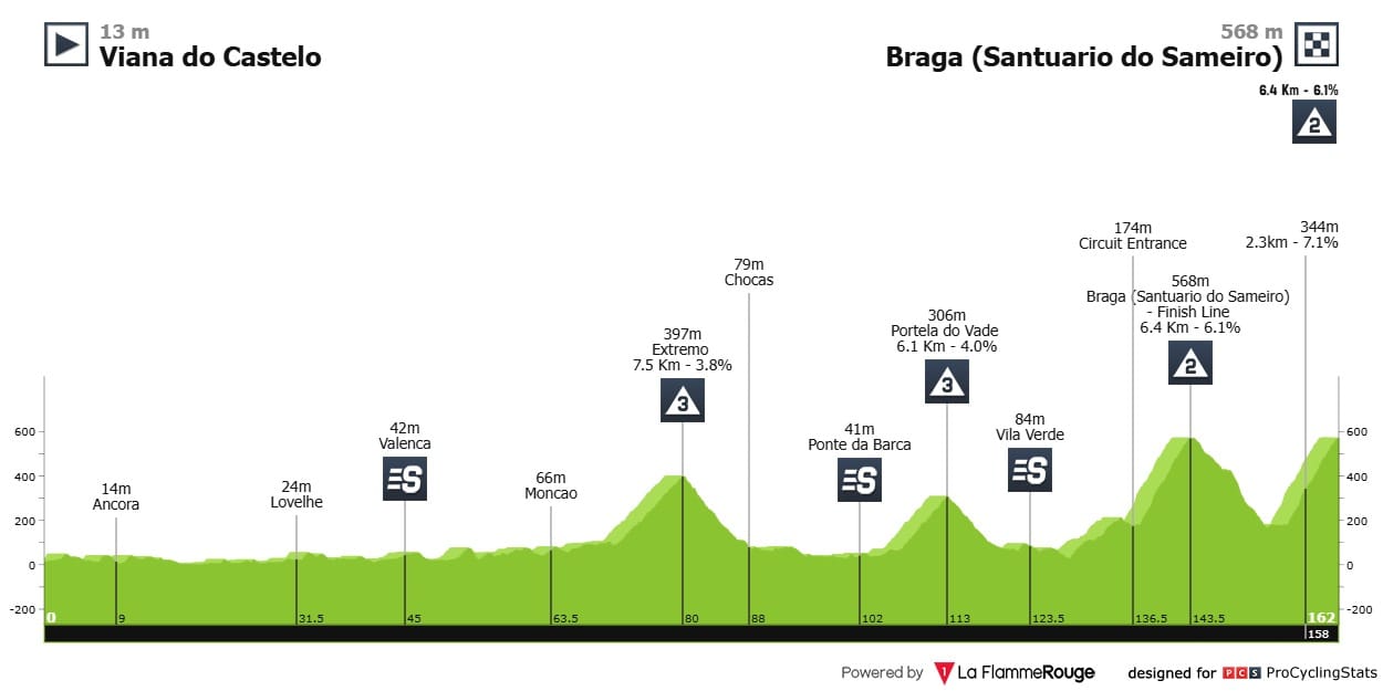 Etapa 1 — Na primeira etapa em linha de 162,3 quilómetros, e após duas montanhas de 3.ª categoria, os ciclistas vão ter uma dupla ascensão ao Santuário do Sameiro (6,4 km a 6,1%) e com direito a final em alto. O primeiro de muitos.