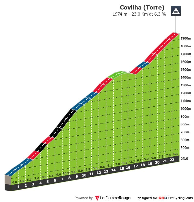 Etapa 6 — E vamos a mais uma jornada montanhosa. Agora de Águeda até à Guarda. Com cinco contagens de montanha categorizadas, esta etapa acaba com uma parede de 3,1 km a 6,1%.