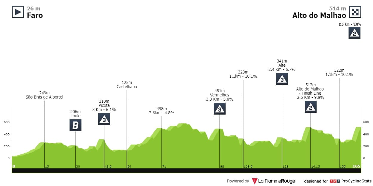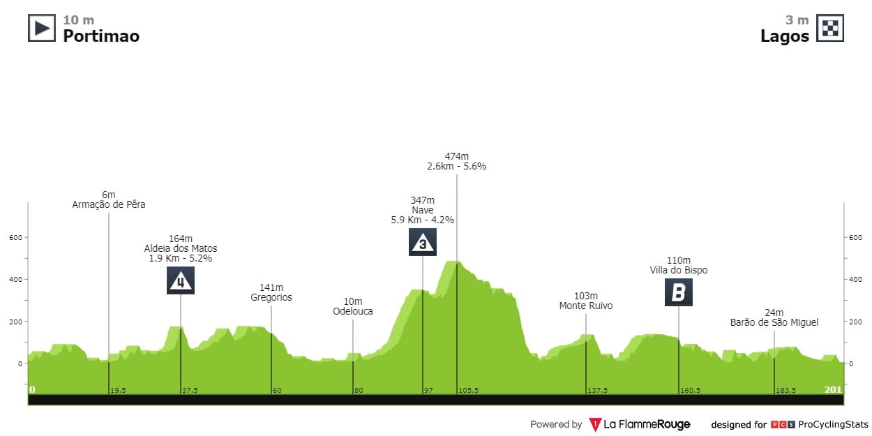 Etapa 1 — Com mais desnível ou menos desnível, a primeira etapa da Volta ao Algarve tem terminado sempre num sprint compacto. Este ano prevê-se terminar da mesma forma.