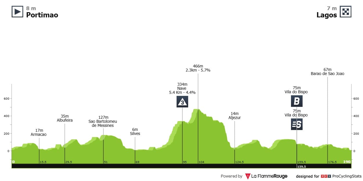 Etapa 1 — Clássico percurso de início de Volta ao Algarve. Partida em Portimão e chegada no centro de Lagos, no clássico sprint compacto.