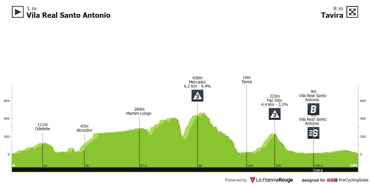 Etapa 3 — A terceira etapa parte de Vila Real de Santo António e, após uma primeira passagem em Tavira, o pelotão regressa a VRSA com um pequeno desvio por Faz Fato (4.4km a 3.2%) para depois, por fim, voltar para Tavira onde terminará em plano.