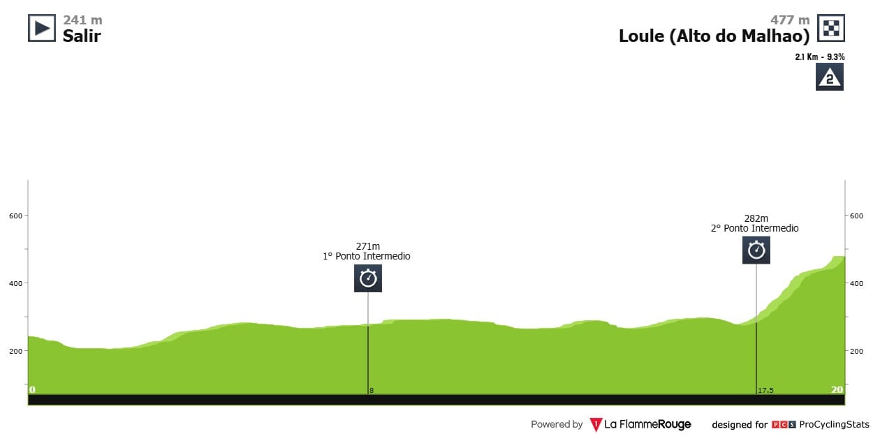 Etapa 5 (ITT) — A última etapa da Volta ao Algarve terá início em Salir e chegada no Alto do Malhão (2.1km @ 9.3%). Contrarrelógio praticamente plano até ao ataque à subida final.