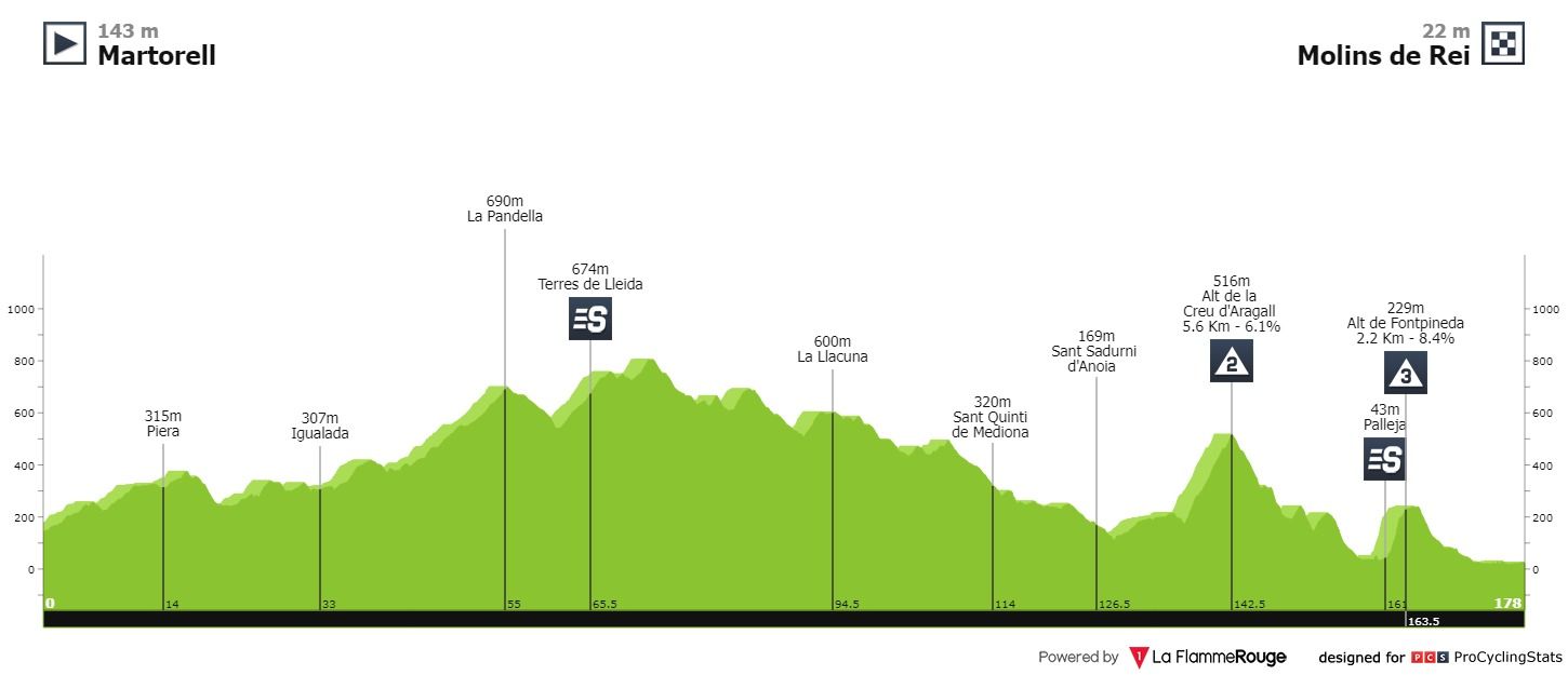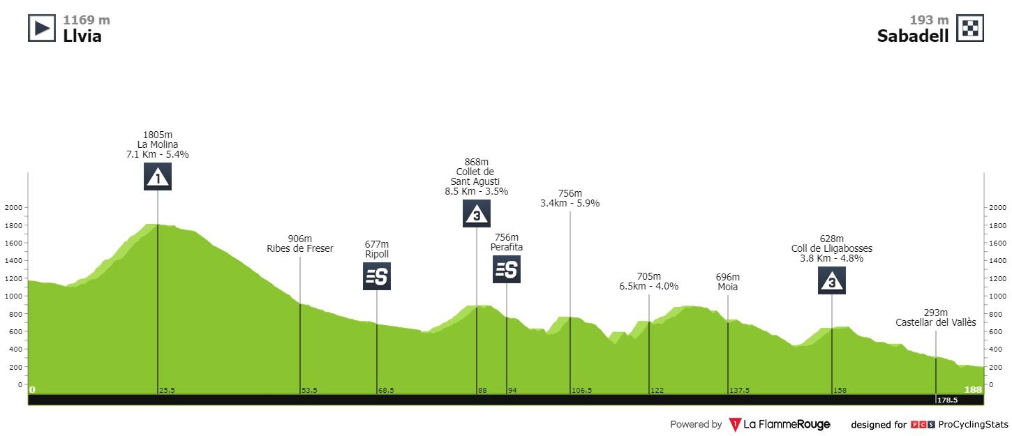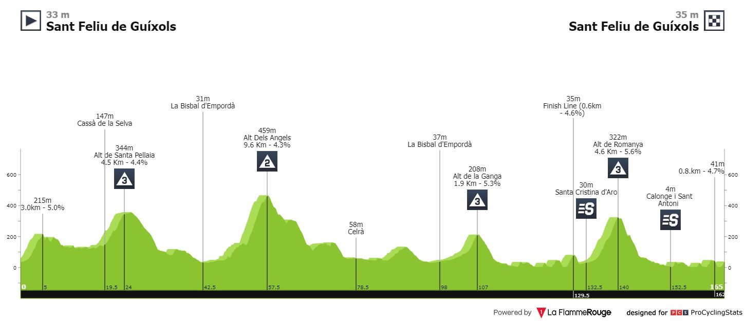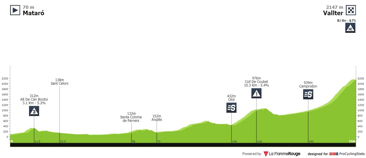 Etapa 2 — Segundo dia de prova, primeiro dia de decisões. As dificuldades estão reservadas para os últimos sessenta quilómetros, onde uma primeira categoria da Wish abre o apetite para a já habitual chegada a Vallter, a mais de 2000 metros de altitude. Em 2021, Adam Yates venceu aqui numa etapa muito semelhante.