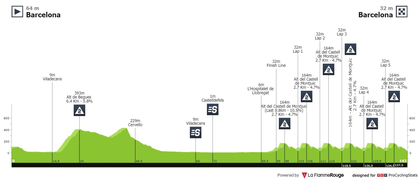 Etapa 7 — O já tradicional circuito de Barcelona tem-nos trazido poucas diferenças mas entretenimento de qualidade. Se a geral estiver presa por segundos, pode ser uma etapa louca. Caso contrário o cenário mais provável é um sprint num grupo reduzido como aconteceu no ano passado, onde a vitória foi para Andrea Bagioli num grupo de dezoito corredores.