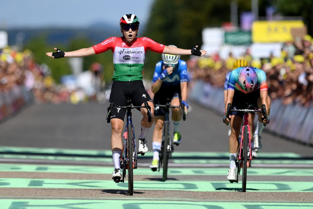 O seu palmarés já inclui etapas no Giro d'Italia, Tour de France e Tour de Suisse. Este ano, alcançou um notável 2º lugar no Troféu Alfredo Binda, superando a rainha Marianne Vos, entre outras. O seu currículo conta ainda com um 4.º lugar nos Jogos Olímpicos de Paris e o que considero a sua verdadeira apresentação ao ciclismo de estrada: após a sua estreia pela equipa com um 9º lugar na Vuelta, no Mundial de 2021 na Bélgica, com apenas 21 anos e quatro meses após assinar pela SD Worx, enfrentou subidas, pavé, chuva e frio para terminar em 4º lugar num pelotão repleto de estrelas.