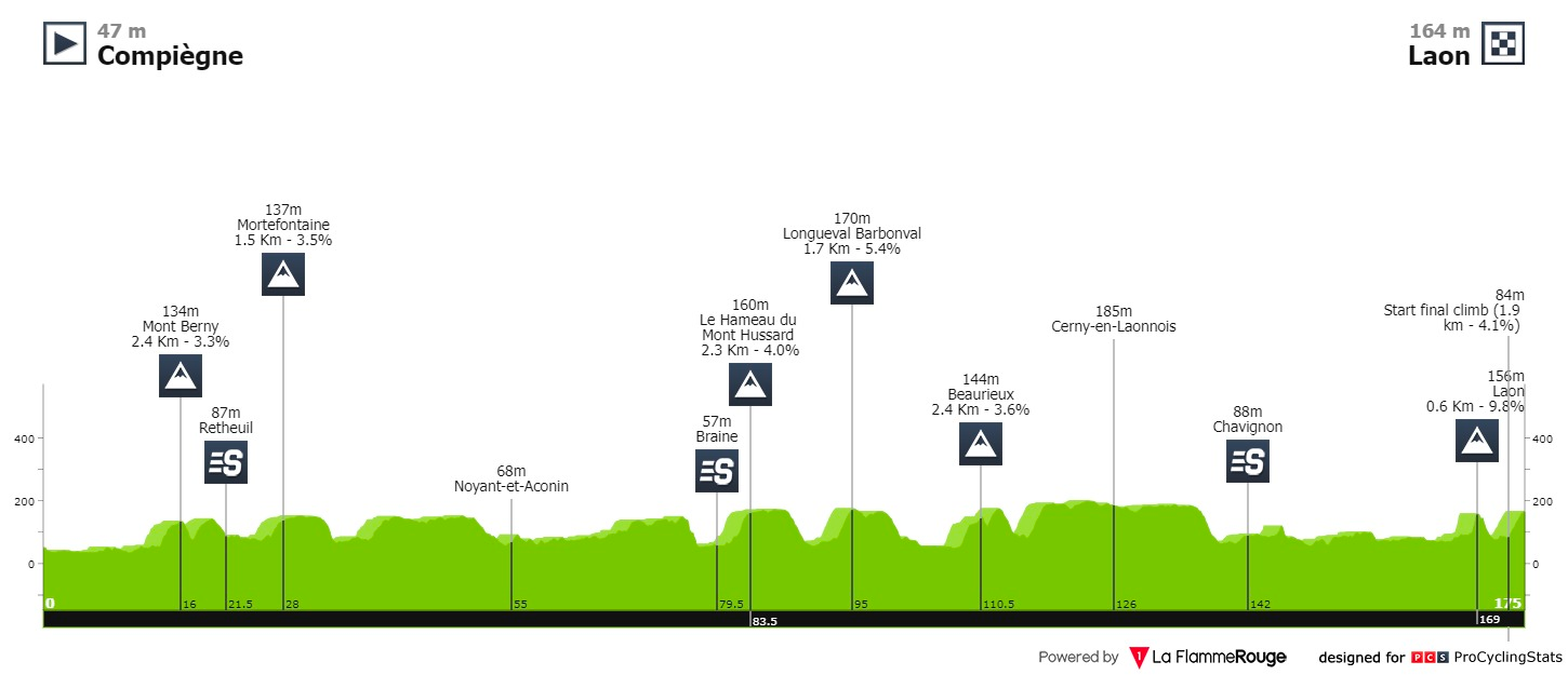 - Etapa 2 — Pequena inclinação no final, os classicómanos mais rápidos podem tentar obter aqui um bom resultado. Ainda assim não descarto ver alguns sprinters na luta pela vitória.