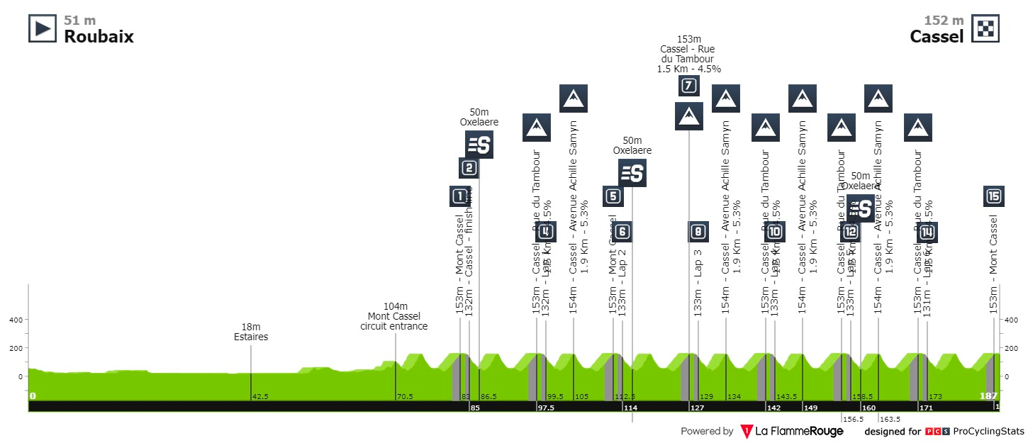 - Etapa 5 — Etapa que irá fechar a geral. Sete voltas a um circuito composto por duas subidas, uma delas com pavé.