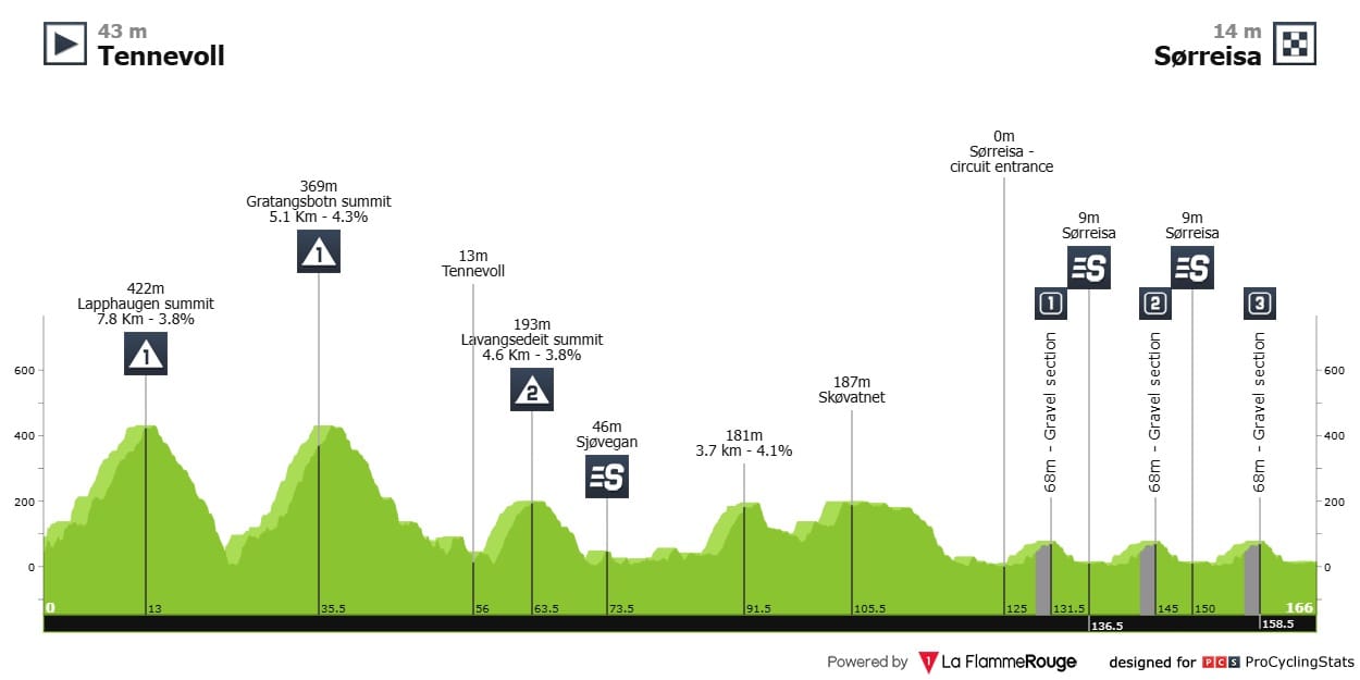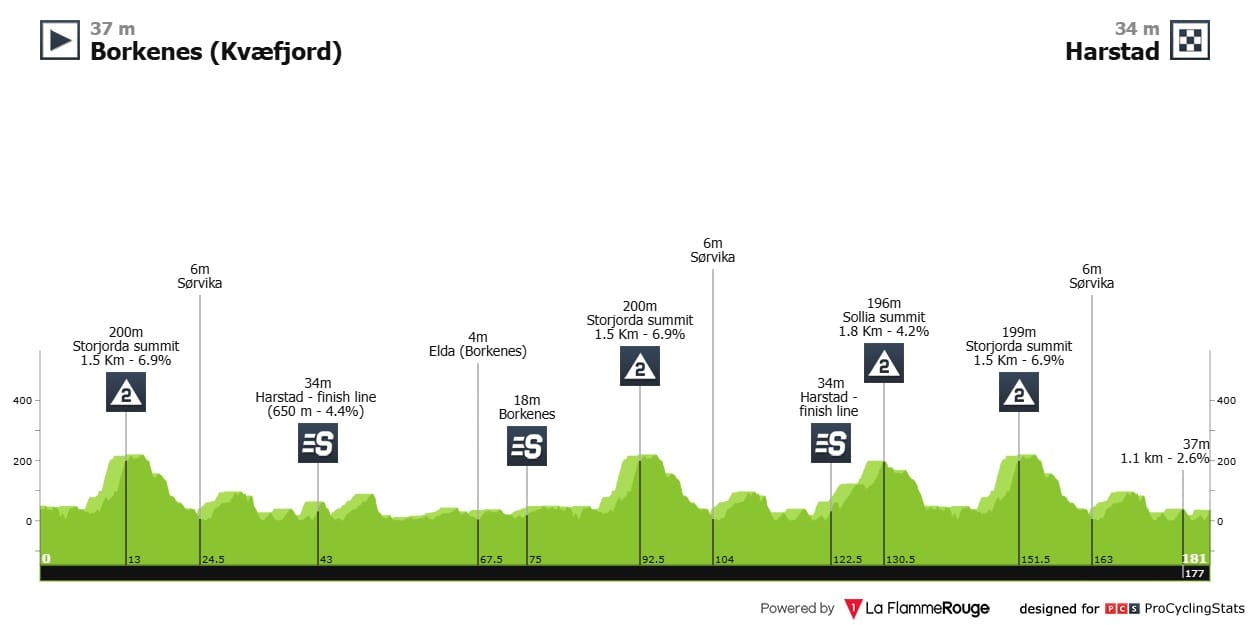 Etapa 3 — Em teoria, esta é a jornada mais importante para a classificação geral. Quase quatro quilómetros a 8%, numa corrida como a Arctic Race of Norway, é estilo Bola del Mundo. Venham daí, trepadores.