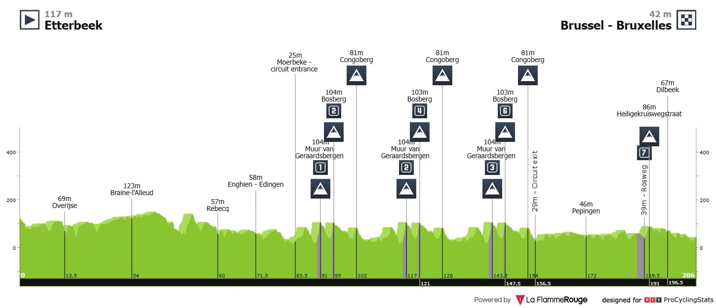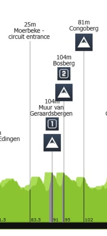 Nos últimos 50 quilómetros, os ciclistas continuam por terreno acidentado, com a maior dificuldade a ser a Heiligekruiswegstraat— desafio-vos a dizer este nome 10 vezes em voz alta —, que surge após um setor de pavé. Esta combinação pode reservar algumas surpresas, como aconteceu no ano passado com a vitória de Jonas Abrahamsen.