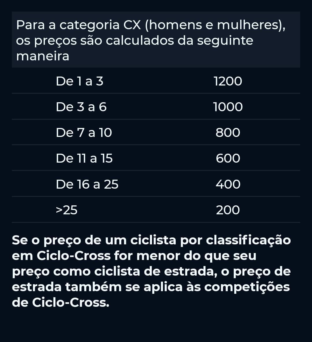 Depois da poesia, as regras dos valores dos ciclistas para o CX: