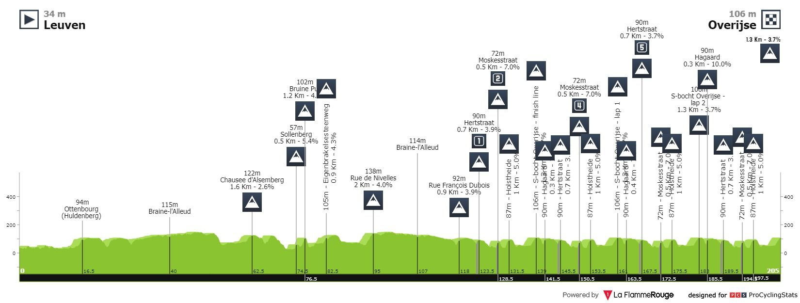Análise ao percurso: Esta tem sido a prova onde nos últimos dois anos, a INEOS tem feito aparecer corredores no radar dos mais distraídos. Como de costume, os homens iniciarão em Leuven. Antes do final irromper no circuito local, em Overijse e arredores, o pelotão dirige-se para Beersel na primeira parte da corrida. Nesta parte, aguardam as primeiras subidas, incluindo a Bruineput. O pelotão parte depois então em direção a Overijse, onde se encontram as ferozes escaladas que caracterizam a Brabantse Pijl. Após uma primeira passagem por Hertstraat, Moskesstraat, Holstheide e S-bocht, à espera dos ciclistas estará nada menos que 3 voltas, nas quais enfrentarão o desafio de Hagaard, seguido das quatro subidas acima mencionadas. Após 205 quilómetros e 24 subidas, vamos saber o nome do sucessor de Magnus Sheffield.
