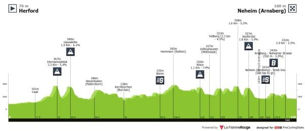 Etapa 2 — Perfil para se começar a decidir a classificação geral. Um constante sobe e desce, será uma etapa para os puncheurs.