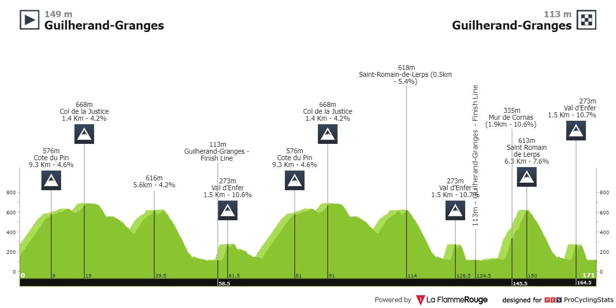 Análise ao percurso: É duro, é sempre em sobe e desce mas até às duas subidas finais a ação não deve arrancar a sério. É aí que entramos na fase decisiva da corrida, com duas subidas bastante duras, a primeira com um perfil mais de trepador (6.3km @ 7.6%, mas com 1.9km @ 10.6%) deve selecionar desde logo bastante o grupo que manterá as ambições de disputar a vitória. Para fazer os acertos finais, o muro de Val d'Enfer (1.5km @ 10.7%) culmina a sete quilómetros da meta, feitos metade a descer metade em plano. É um percurso para puncheurs de elite ou voltistas, de preferência com boa ponta final.