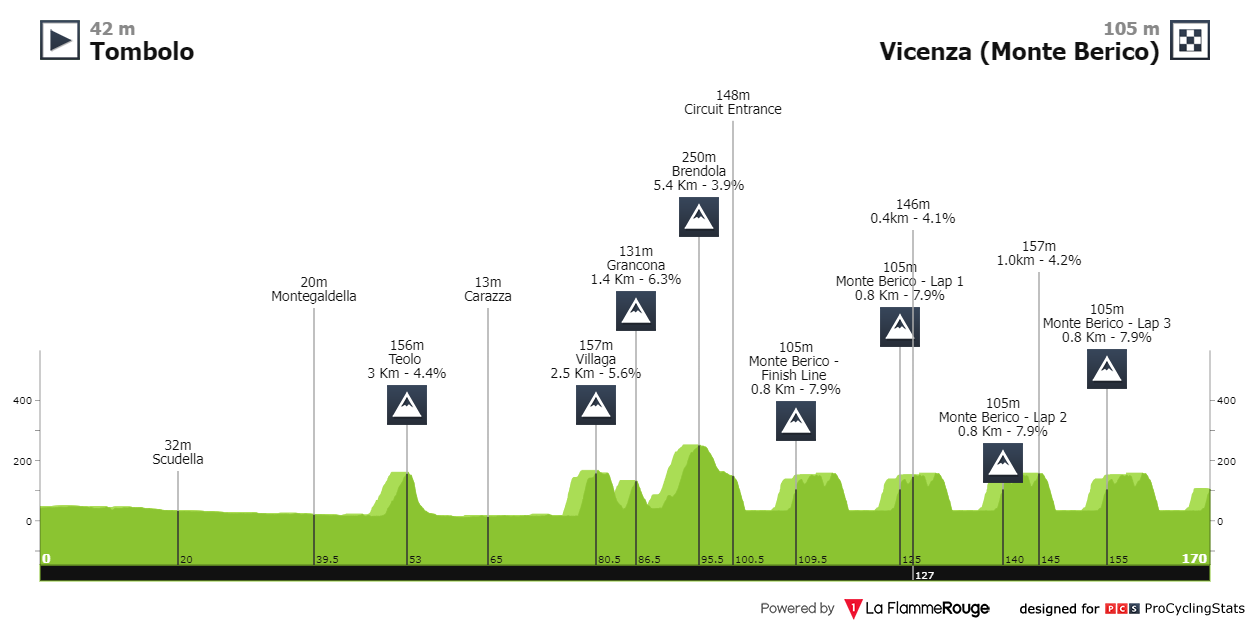 Análise ao percurso: Típica clássica italiana com sobe e desce e quilometragem relativamente curta. É a 86.ª edição de uma prova mítica da zona de Veneto que este ano arranca em Tombolo e vai até Vicenza, passando em redor da belíssima cidade de Pádua, onde Meurisse derrotou Trentin em 2021, no Prato della Valle. A edição desde ano termina com uma rampa nos últimos 1000 metros. As três passagens pelo Monte Berico são as fases mais duras do percurso. Para não variar, a UAE Emirates apresenta a equipa mais forte da startlist.