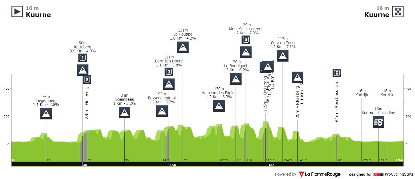 Análise ao percurso: Típico traçado de clássica, ou seja espetáculo garantido. Do quilómetro 35, ao quilómetro 142 será um sobe e desce constante, mesmo ao jeito dos tradicionais classicómanos. E que bons que vamos ter nesta prova. Mas a dúvida instala-se a partir daí, pois o percurso torna-se bem mais plano e as equipas que não tiverem ninguém na frente procurarão chegar e aí alguns sprinters podem vencer. A equipa da Jumbo Visma poderá ter um papel bastante importante na corrida, conforme lhes vá correndo a prova. De realçar que Fábio Jakobsen venceu aqui o ano passado. Subidas a destacar, Mont Saint Laurent e Côte du Trieu. Ambas com cerca de 1km a rondar os 7% de inclinação.