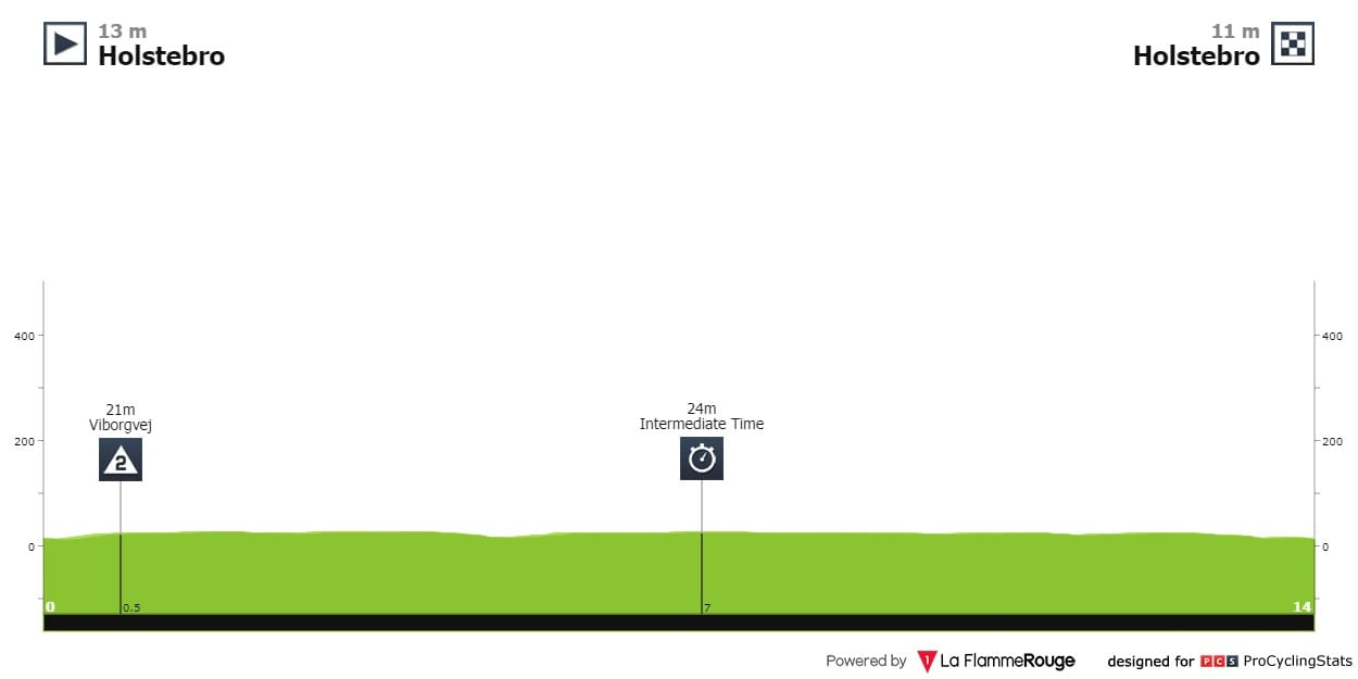 Análise ao percurso: Percurso sem grande elevação, ora não fosse a Volta à Dinamarca — a maior montanha na Dinamarca continental é o Møllehøj com 170 metros de altitude. Os sprints intermédios poderão decidir o sucessor de Mads Pedersen.