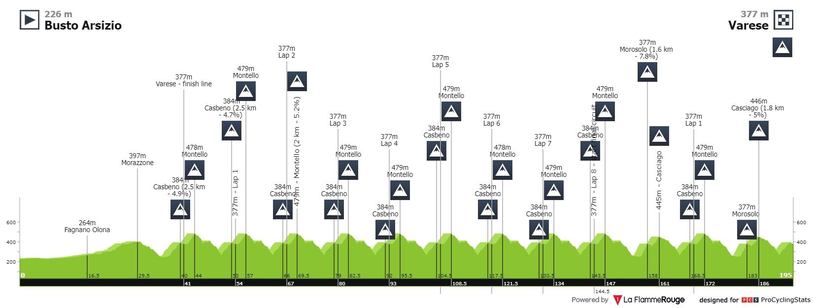 Análise ao percurso: Estamos todos a contar os dias para a Lombardia — último monumento do ano que sábado vai para a estrada. Entretanto, temos aperitivos condignos por caminhos italianos. A Tre Valli Varesini é um desses miminhos: 196.3 quilómetros entre Busto Arsizio e Varese. É uma clássica acidentada que assinalou em 2021 os seus cem anos de história. Os primeiros 150 quilómetros de corrida são feitos em oito voltas num circuito que oferece aos corredores duas ascensões não muito duras: Casbeno (2.5km a 4.8%) e Montello (2km a 5.2%). Depois disso, aparecem as maiores dificuldades da tirada: Morosolo (1.6km a 7.8%) e Casciago (1.8km a 5%). Na última fase da prova passam estas duas colinas por duas vezes e ainda Casbeno e Montello de novo, antes de uma subida não categorizada que antecede a chegada a Varese.