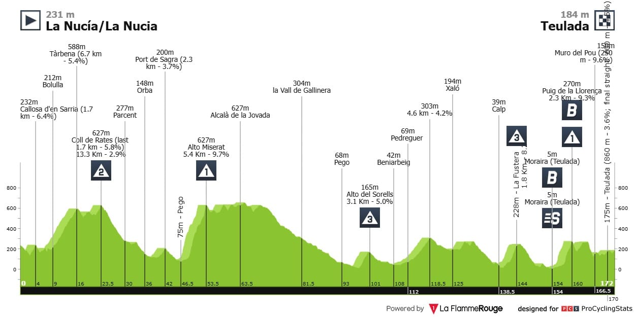 Etapa 3 — O Alto de Tibi é, para a Vuelta Valenciana, como aquele tasco ao pé de casa onde passam lá a vida, mas nunca é o sítio mais importante para a corrida. Este ano, tem algum protagonismo: uma subida de 7.5km a 5%, que deve partir o pelotão antes de nova subida e uma descida longa até à meta. Será que Mads aguenta?