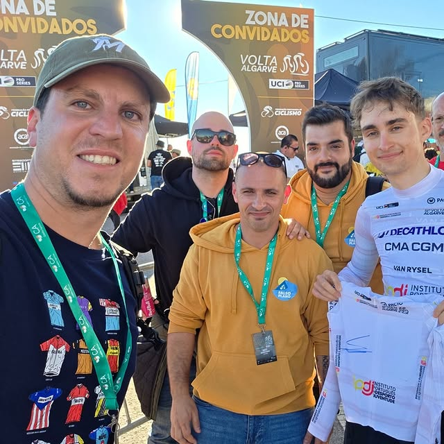 Quanto ao Paul (ainda mais) júnior, que dizer? É um espanto, o miúdo. Na bicicleta, impressiona, defronta os grandes como se de uma prova amadora se tratasse, evidencia que a idade não é relevante quando o talento é estratosférico a este ponto. Eu estou, talvez até em demasia, entusiasmado com o que este rapazinho, adotado como português, pode vir a ser capaz de fazer. Ouso dizer, até, que desde que acompanho ciclismo de forma intensa, é o maior projeto de ciclista que já vi. E logo com a carga extra de ser francês, de carregar consigo o sonho de um povo que lhe vê vedada a vitória na sua prova há já 40 anos. É desta, eu acredito que sim e acredito que ele também acredita. Paul Seixas está ai e veio para ficar. Abriu a conta no Algarve (à semelhança do que tinha feito aí um outro talento, este esloveno, em 2019) e agora quem puder que o agarre. Mais do que a prestação nas "montanhas" algarvias, o seu contrarrelógio deixou-me boquiaberto e, se dúvidas ainda havia depois do Avenir e dos Europeus do ano passado, acho que elas se dissiparam agora. Este miúdo, assim não se estrague e não o estraguem, é realmente the next big thing. A questão não é "se" vai ganhar, a questão é só "quando" e "quantos". Pelo menos é nisso que eu acredito. E o falso plano marcou já a sua posição no que à relação com o prodígio PORTUGUÊS diz respeito. Uma pequena entrevista no primeiro dia, quando fomos convidados a participar num ajuntamento de jornalistas que queria falar com ele, uma camisola autografada no último, a que ainda se juntou uma bela foto para a posteridade. Se ele vier a ser isto tudo que eu digo, ótimo, tenho provas do que e quando o disse e temos esta foto. Se não vier, também ninguém se vai lembrar.