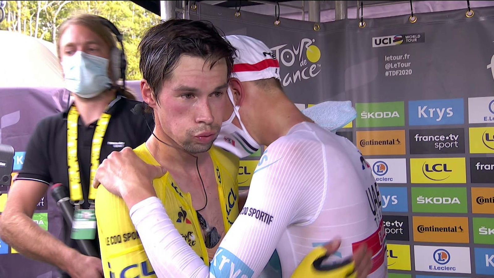 2020... Ano terrível para todos nós, mas o que dizer do dia 19 de setembro de 2020 para Roglic? A representar a mesma equipa, mas agora de seu nome Team Jumbo-Visma, partia para o contrarelógio da vigésima etapa do Tour com 57 segundos de avanço do segundo classificado, o menino Tadej Pogacar. Era o grande favorito a concretizar o seu sonho de vencer a mais importante volta de 3 semanas, quando tudo se desmorona e corta a meta com a cabeça inchada perdendo 1 minuto e 56 segundos para o seu compatriota e amigo. Parecia que tinha saído de um cenário dantesco. Ele e eu… Que murro no estômago! Fiquei incrédulo ao ver o que lhe tinha acabado de acontecer. O psicológico é complicado em certas alturas... Mas não perdeu o cavalheirismo que o caracteriza, e que a mim me agrada bastante essa sua forma de ser, sendo que a primeira coisa que fez foi dar os parabéns ao futuro vencedor da Volta a França 2020.