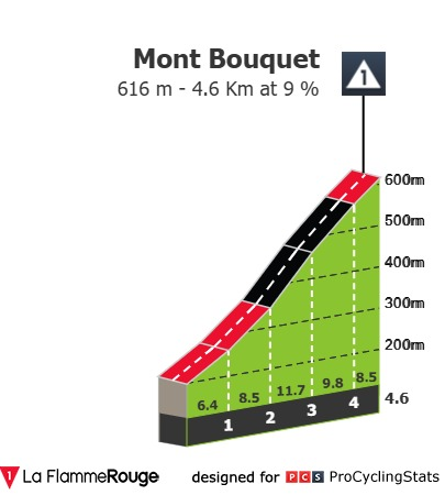 Ao contrário da edição anterior, vencida por Mads Pedersen, o percurso de 2025 devolve-nos o Mont Bouquet, montanha pertencente à zona sul do Maciço Central, na região da Occitânia. Cumpre-se em 4.6 quilómetros a 9% de pendente média. Foi utilizado nas edições de 2020 (Ben O'Connor), 2022 (Tobias Halland Johannessen) e 2023 (Mattias Skjelmose) e é, naturalmente, decisivo. Vai ser o final da quarta etapa e deve afastar os homens mais rápidos da corrida pela geral.
