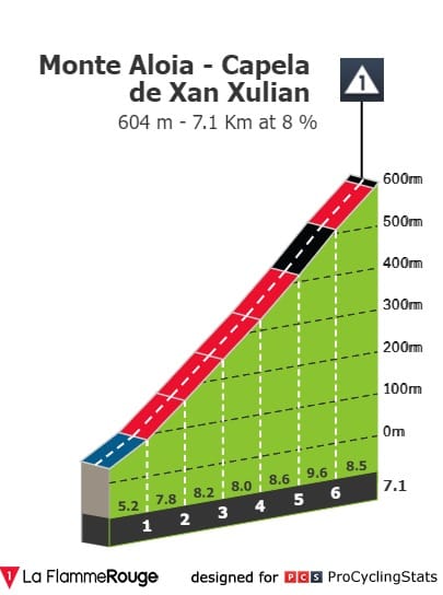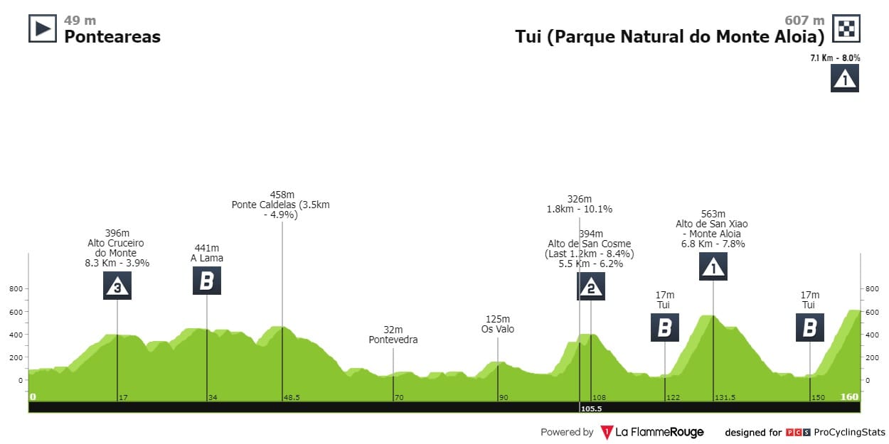 A subida final ao Monte Aloia é a mais dura da semana e faz a sua estreia na prova. Dou um biscoito a quem conseguir ser ousado o suficiente para adivinhar quem vai ganhar aqui.